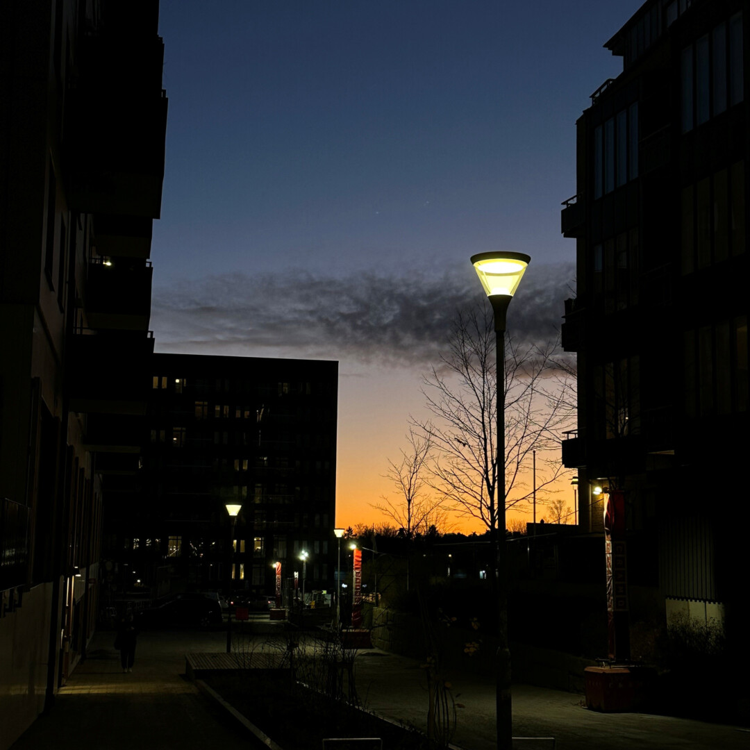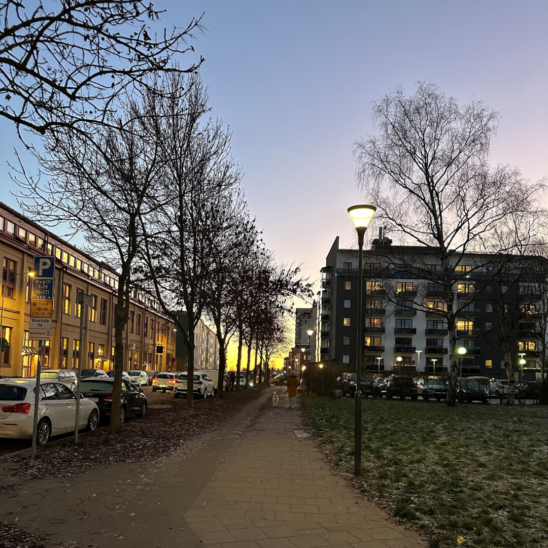 Stockholms stad äger och underhåller majoriteten av belysningsanläggningarna på kommunala gator. Här på Tellusborgsvägen och kvarteren vid sidan av har de valt vår armatur SKY Park.